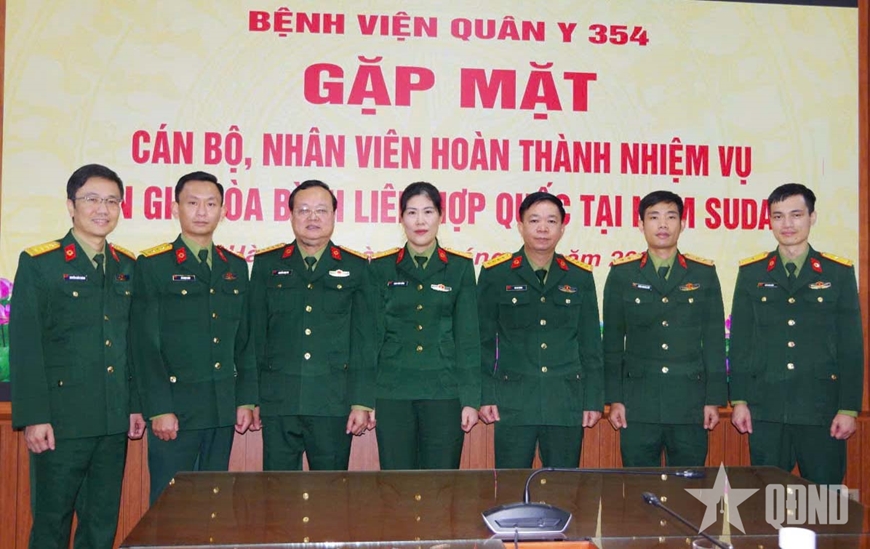 Ngày 10-12, Bệnh viện Quân y 354 (Tổng cục Hậu cần – Kỹ thuật) gặp mặt cán bộ, nhân viên Bệnh viện vừa hoàn thành nhiệm vụ gìn giữ hòa bình Liên hợp quốc tại Nam Sudan. Đại tá Hà Duy Dương, Giám đốc Bệnh viện Quân y 354 chủ trì gặp mặt.