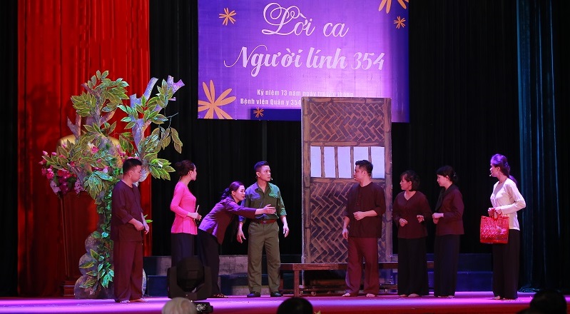 Với chủ đề “Âm vang những bài ca Bệnh viện Quân y 354”, Hội thi văn nghệ giữa 4 khối: Cơ quan, Nội, Ngoại và Cận lâm sàng, đã mang đến cho khán giả nhiều tiết mục văn nghệ đặc sắc, đa dạng về thể loại. Mỗi khối đều thể hiện một chương trình văn nghệ với nội dung thể hiện các bài hát sáng tác về Bệnh viện Quân y 354; ca khúc ca ngợi Đảng, Bác Hồ, tình yêu quê hương đất nước… Giao lưu với chỉ huy Bệnh viện qua các thời kỳ, các thế hệ cán bộ, nhân viên, chiến sĩ, người lao động Bệnh viện như được sống lại một thời kỳ nhiều gian khó nhưng cũng rất anh hùng và tự hào.