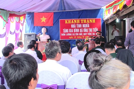 Tại lễ khánh thành và bàn giao nhà, Thiếu tướng Phạm Văn Huấn, Bí thư Đảng ủy, Tổng biên tập Báo Quân đội nhân dân xúc động nói: Ngôi nhà nhỏ nhưng nghĩa tình quân-dân sâu sắc, thắm nồng, là món quà thể hiện tình cảm, lòng biết ơn, tri ân của những người làm báo và những người thầy thuốc với những người có công với cách mạng, gia đình chính sách, người nghèo ở Lương Xá nói riêng và cả nước nói chung. Trong những năm qua, mặc dù điều kiện vẫn còn nhiều khó khăn nhưng Báo Quân đội nhân dân luôn nỗ lực đẩy mạnh công tác xã hội, đồng hành cùng cả nước thực hiện chính sách đền ơn đáp nghĩa, góp phần cải thiện đời sống cho người dân, gắn kết mối quan hệ quân-dân ngày càng bền chặt. Đồng chí Tổng Biên tập Báo Quân đội nhân dân cũng mong muốn cấp ủy, chính quyền địa phương, bà con lối xóm tiếp tục chăm lo chu đáo cho những người có công nói chung và bà Tiến nói riêng, đưa “đền ơn, đáp nghĩa” thành những việc làm thường xuyên, tô thắm truyền thống “Uống nước nhớ nguồn”, “tương thân tương ái” của dân tộc Việt Nam.