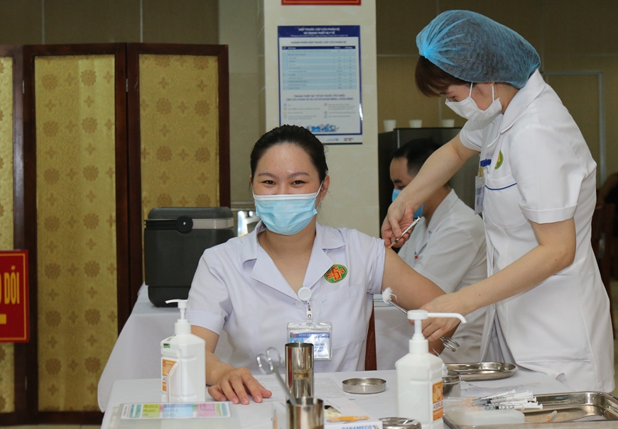 Bệnh viện Quân y 354 (Tổng cục Hậu cần) tiêm vaccine cho các nhân viên y tế trực tiếp làm nhiệm vụ phòng, chống dịch. Ảnh: ĐĂNG GIÁP