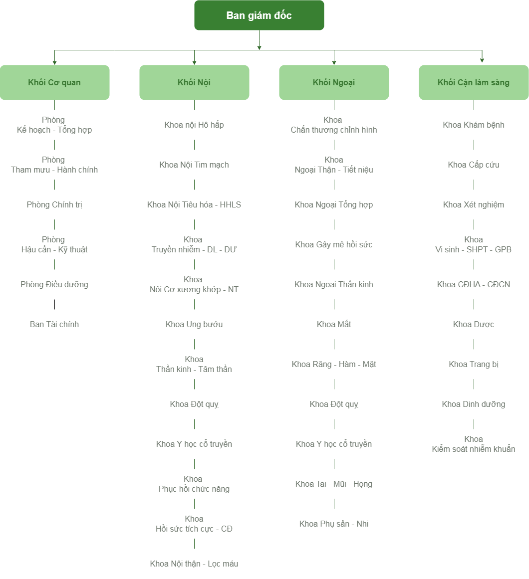Sơ đồ tổ chức của Bệnh viện Quân y 354 vận hành hướng tới mục tiêu chăm sóc sức khỏe toàn diện và hoàn hảo cho nhân dân.